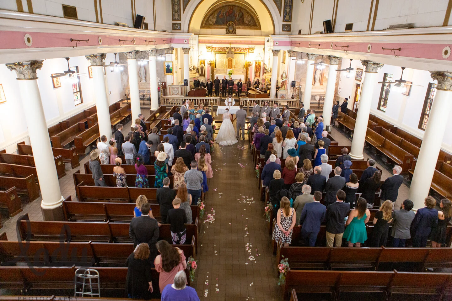 The Ceremony was a full-length mass including songs from the amazing St Augustine choir. Located in the historic Treme neighborhood, St. Augustine is the oldest black catholic church in the US and the first black church in Louisiana. Elisa and Matt attend church there every Sunday but she also is on a committee that is working to restore the old church. She’s a fundraising wizard and the choir loft was in the middle of construction with help from her efforts.