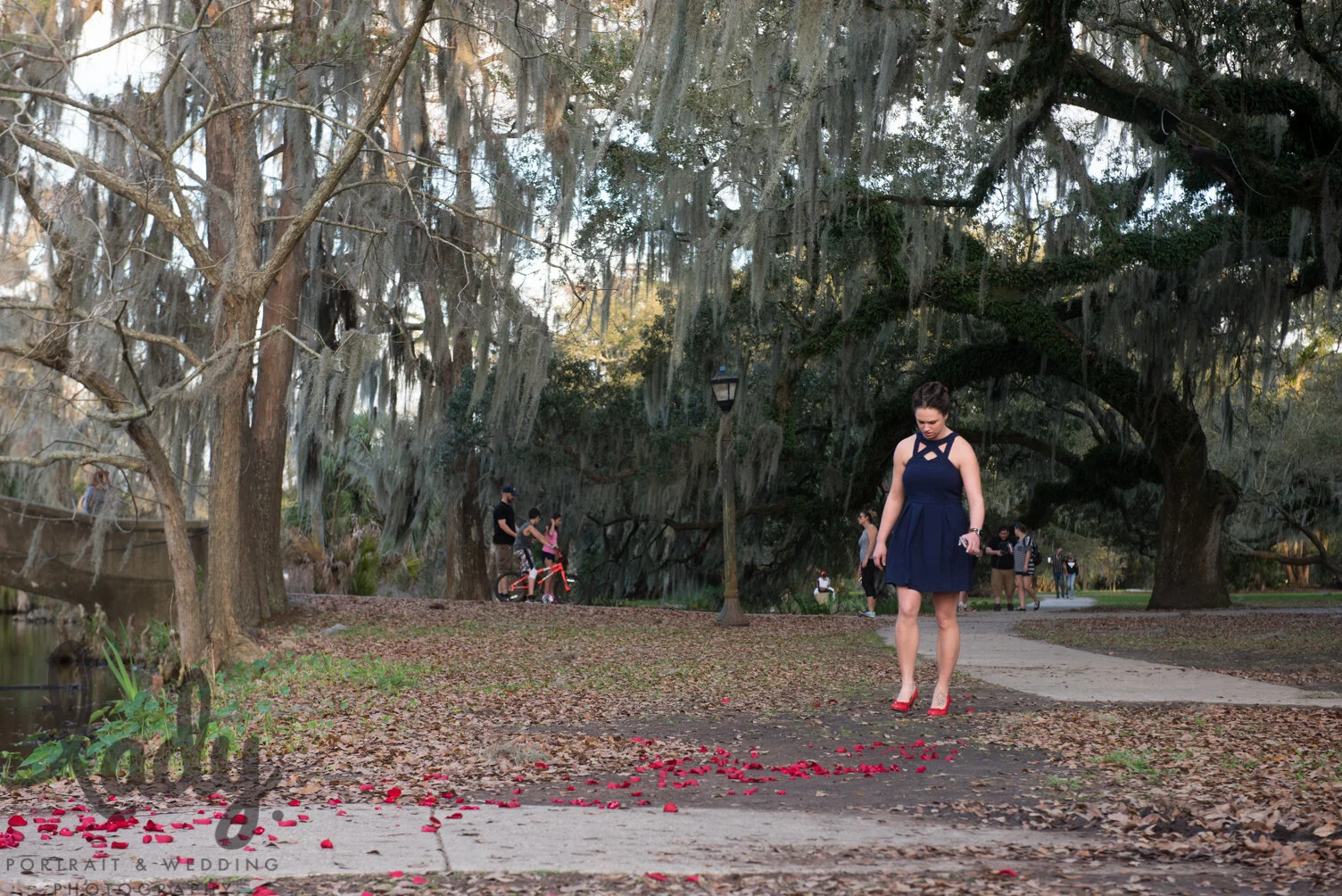 Ray is a boat captain who would be leaving soon for a three month trip to Alaska. He knew they would have to wait a while for a proper engagement party so he wanted to make sure she had one while they were in New Orleans. Since their friends were already there, he enlisted their help in pulling off the plan he and I came up with. We all got to the bridge in New Orleans City Park early so we could set up for the romantic proposal. Kineca was on a sight-seeing tour with a friend and was supposed to meet up with Ray at the park after.