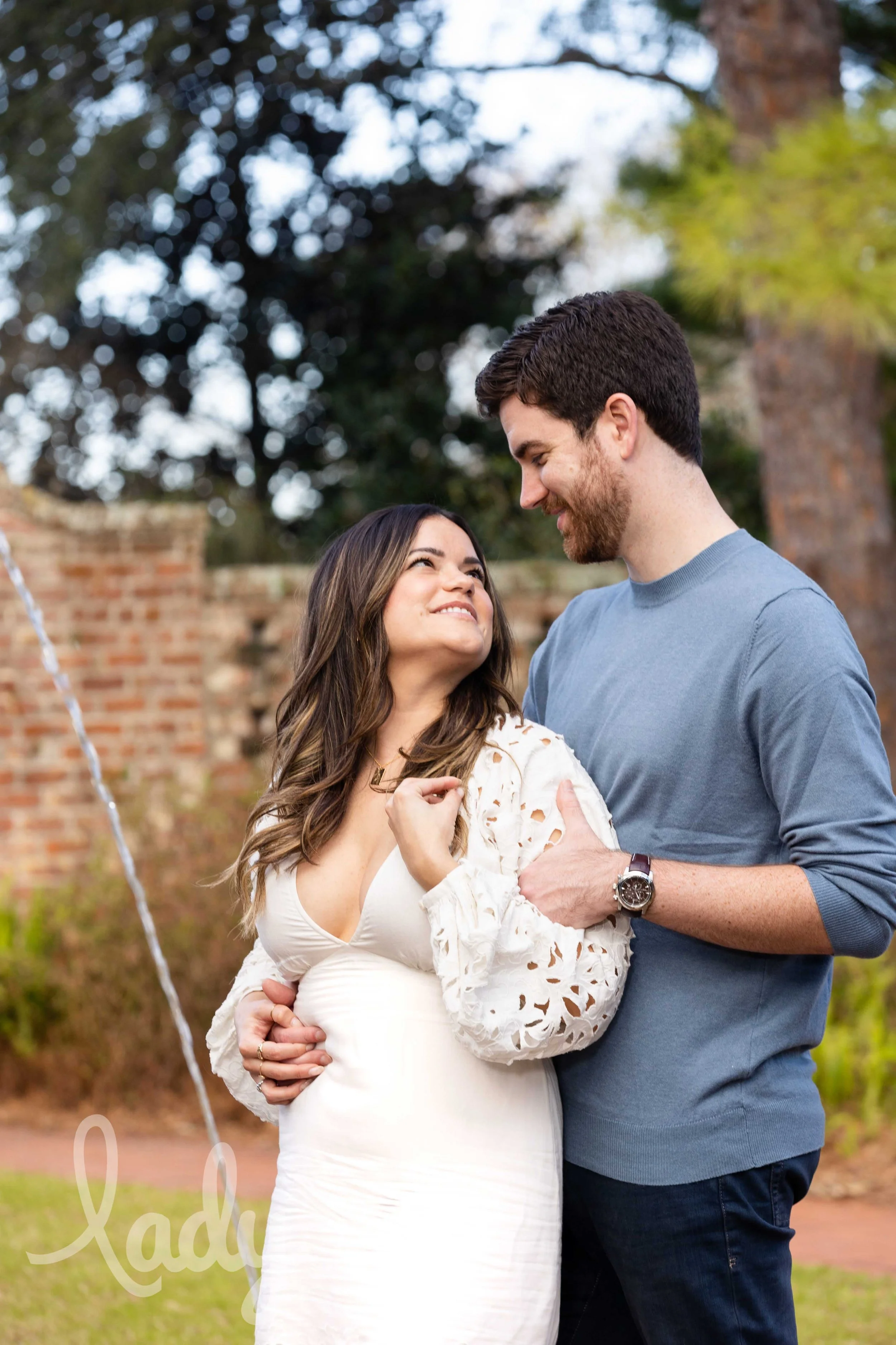 The only downside was that there was a hard freeze in December that killed a lot of the plants. So what was normally a lush garden was a little lackluster in places. While it lacked blooms it was still beautiful. Although, I really could’ve put that couple anywhere and they would have looked great! They are not only a good looking couple but they were easy to pose and work with. Taylor kept Marissa laughing and she had the most beautiful smile (complete with an adorable dimple!).